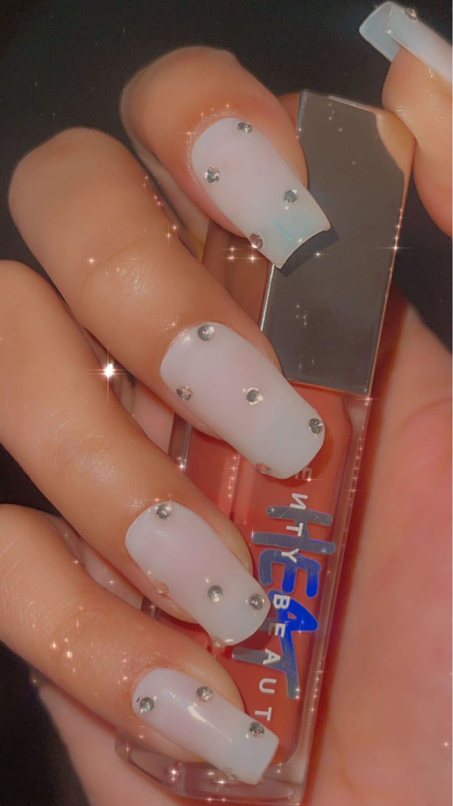 Plain milky white with rhinestones to shine.