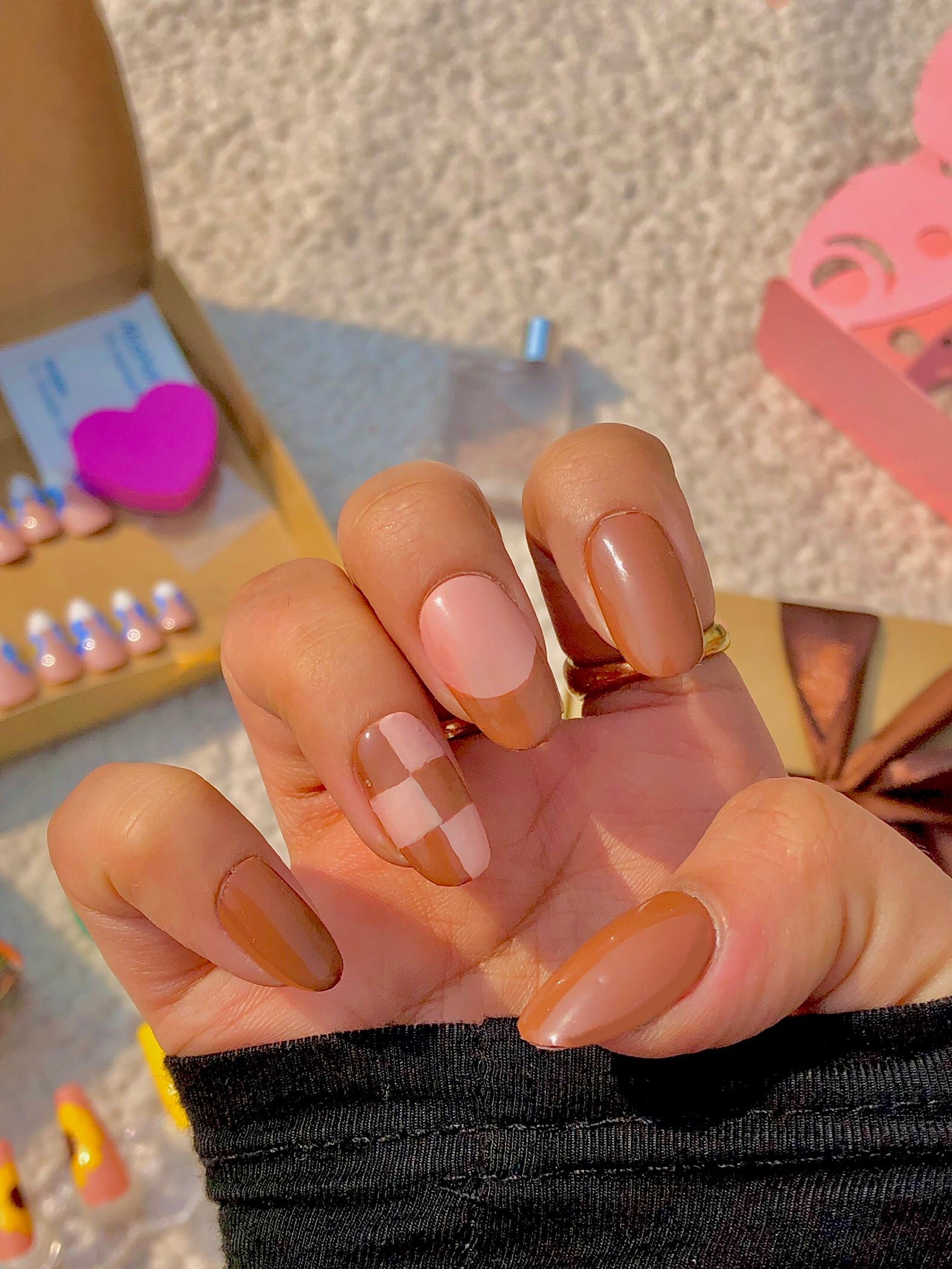Light brown French tips and check pattern ready to get you into fall mood.