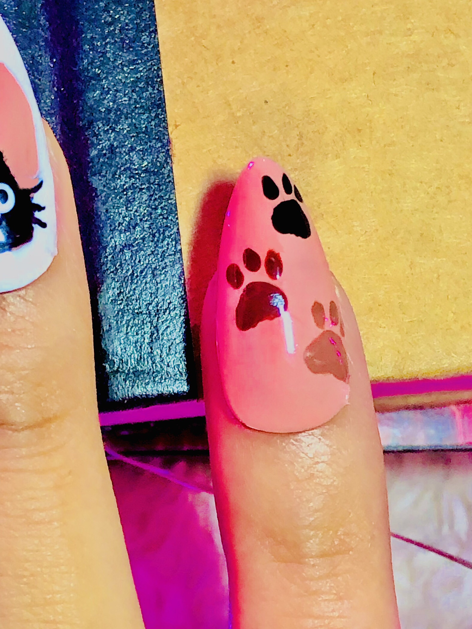 French tips of browns with marble and the tinniest paws that belongs to the furry friend that calls for all the cat moms out there.
