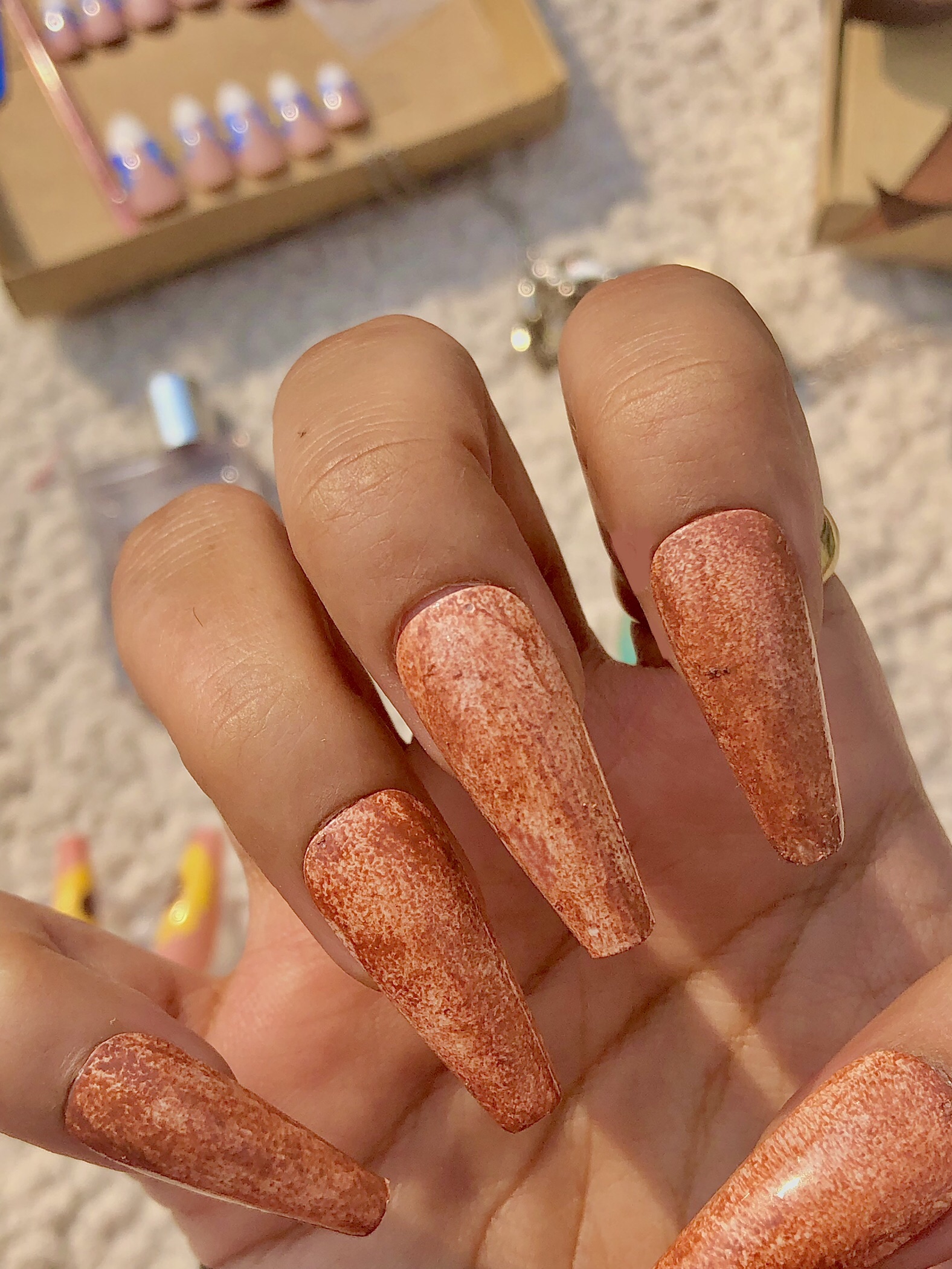 Nude base and textured rustic brown layer that calls for fall.