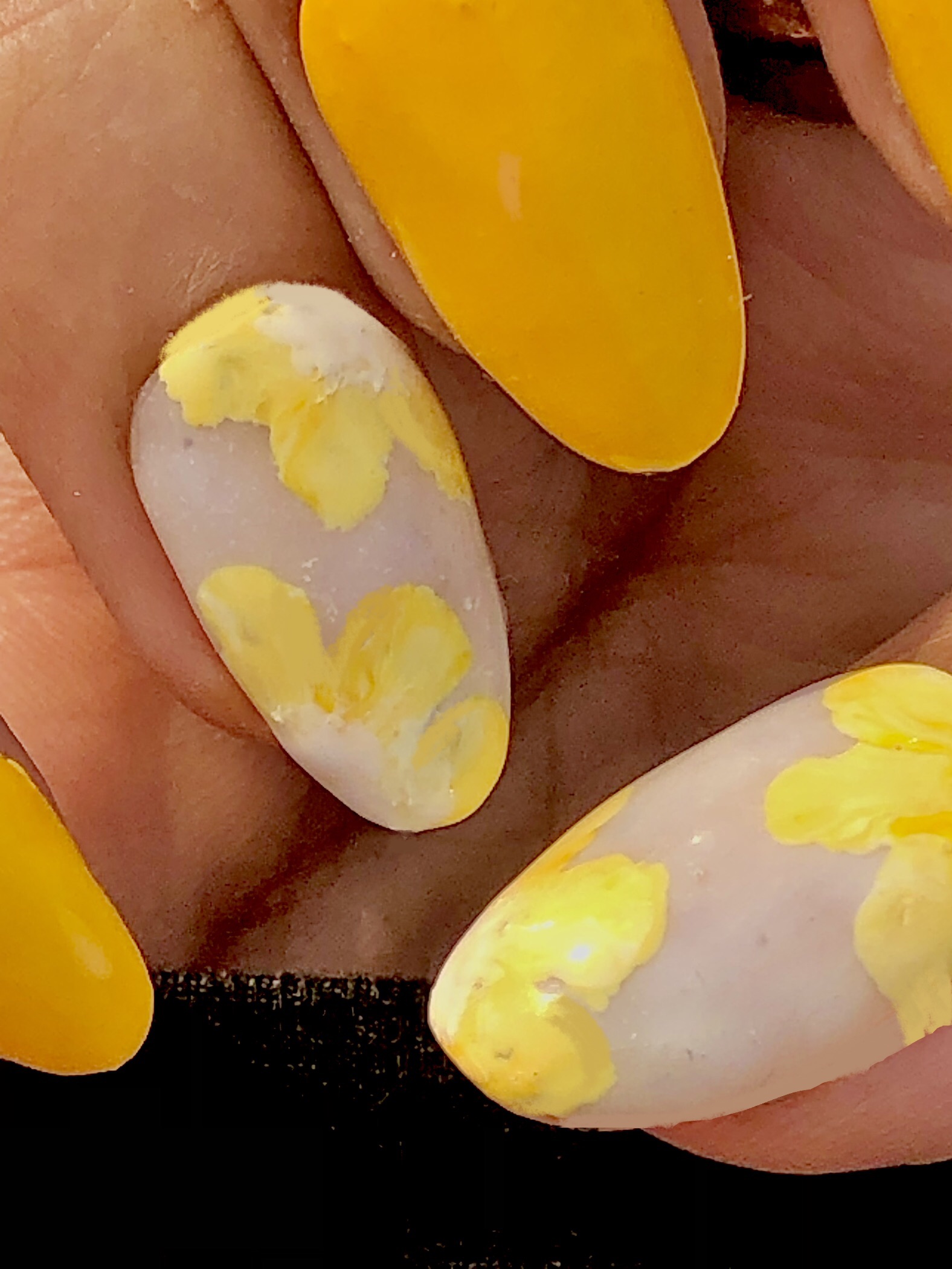 Yellow and white flowers upon a milky white layer to bring the sunlight from within.
